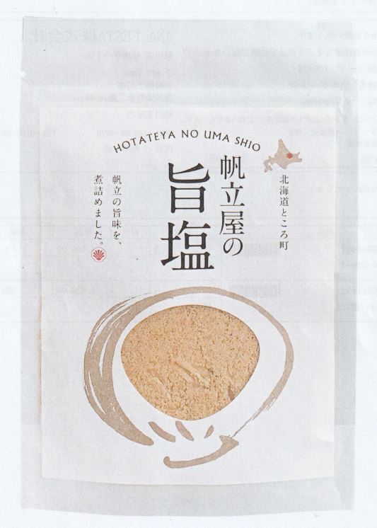 北海道産ほたて貝柱の旨味をとことん煮詰めた帆立屋ならではの調味塩です。帆立貝柱をほぐした身もまるごと1個分*入ってます。*SAサイズ相当