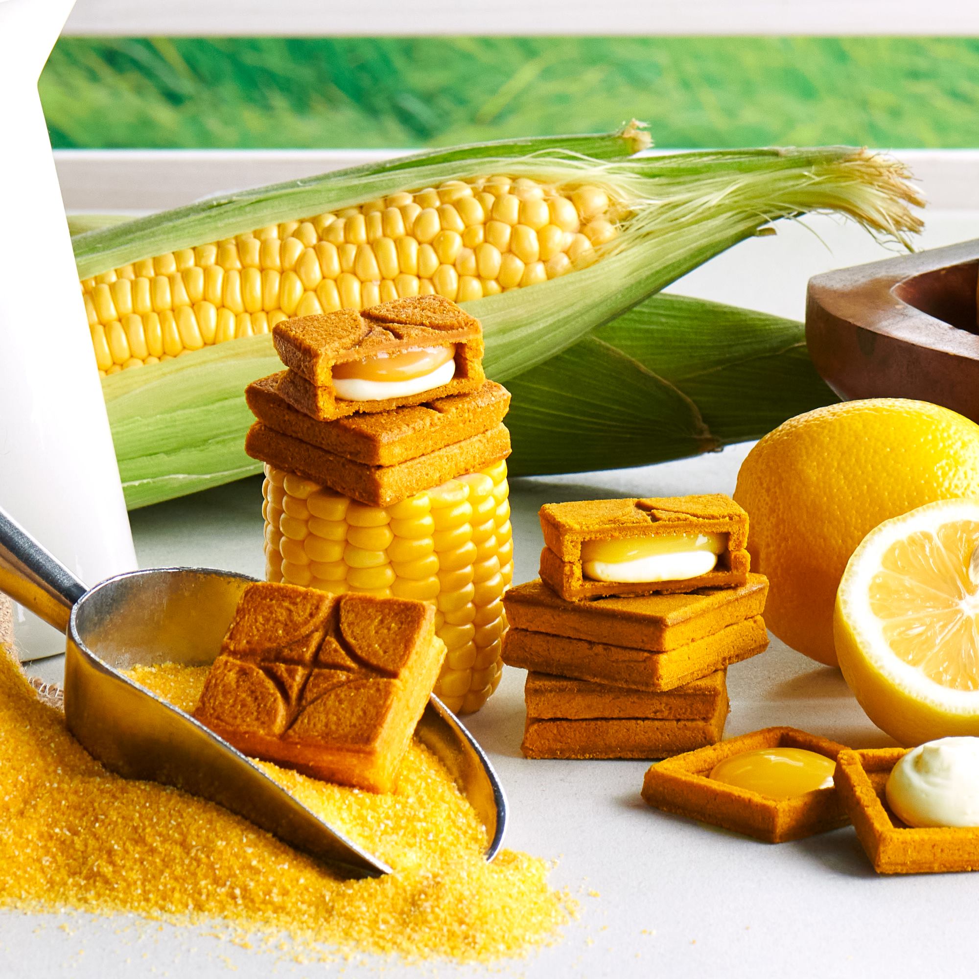 れん乳だけではなく、生地には優しい甘みの北海道産スイートコーンパウダーや、品種ビビアンのとうきびを乾燥させ粒状に粉砕した北海道産コーングリッツを練り込むことでプチプチの食感と特有の香ばしさと甘みで、より北海道の魅力を感じていただけます。