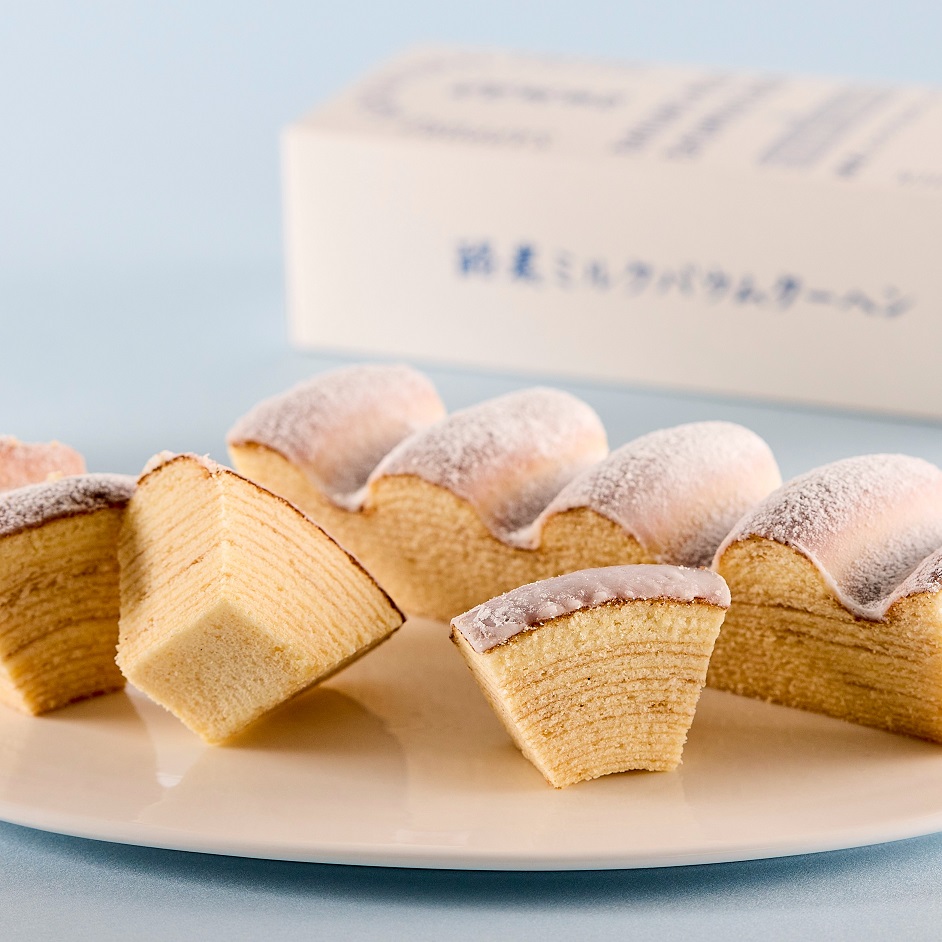 外側のしっとりとしたミルクのグラスと溶け合いやさしい甘みとコクが広がります。自然素材にこだわった酪農の恵みを感じるバウムクーヘンです。