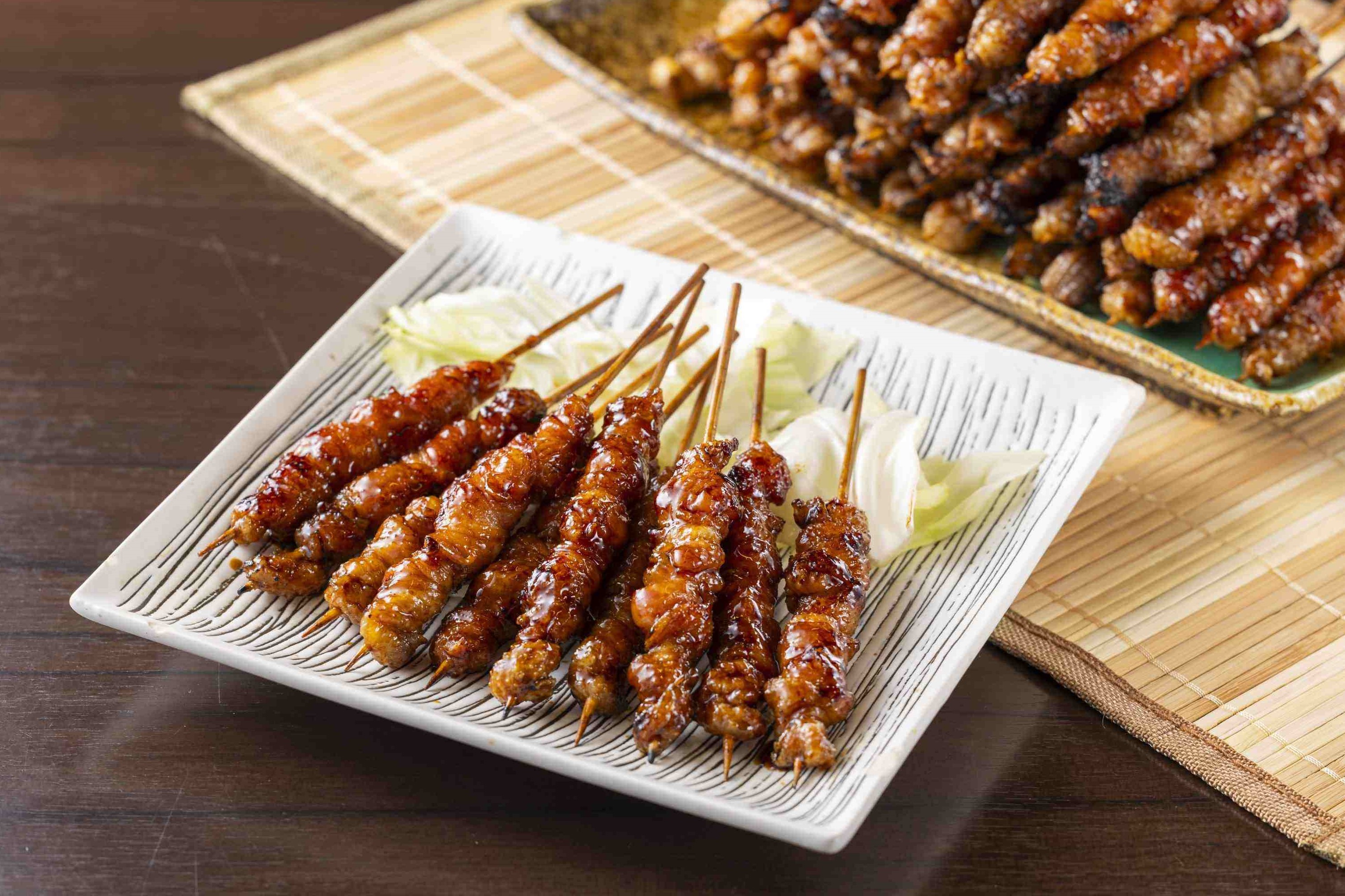 グルグル巻きにしたとり皮をタレに漬けて、繰り返し焼くという製法で作られます。