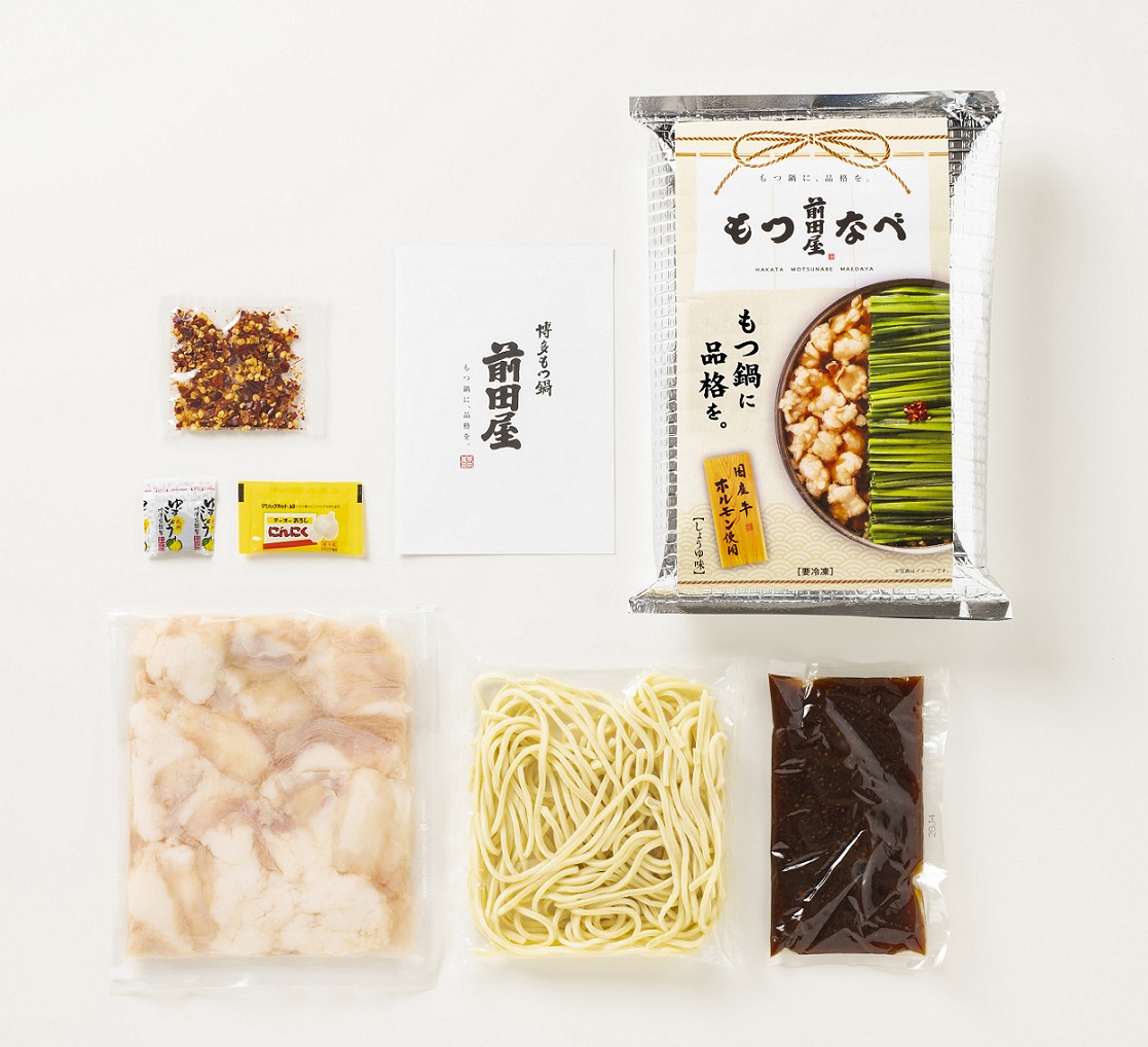 食べログ評価福岡第1位獲得。各メディア多数掲載の話題急上昇中「博多もつ鍋前田屋」。おうちごはんで是非、福岡でしか味わえない名店のもつ鍋をどうぞ。味噌味につづき、ご要望が多かった醤油味もできました!ツアーのあとやプライベートの旅行などでも有名人が立ち寄り、さらには世界的なアーティストやYouTuberも大絶賛の前田屋のもつ鍋!
