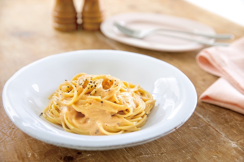 ピエトロレストランの人気メニュー「博多明太子カルボナーラ」をご家庭向けにアレンジしました。 福岡名物の“辛子明太子”とカルボナーラの濃厚でクリーミーな組み合わせがクセになる一品です。