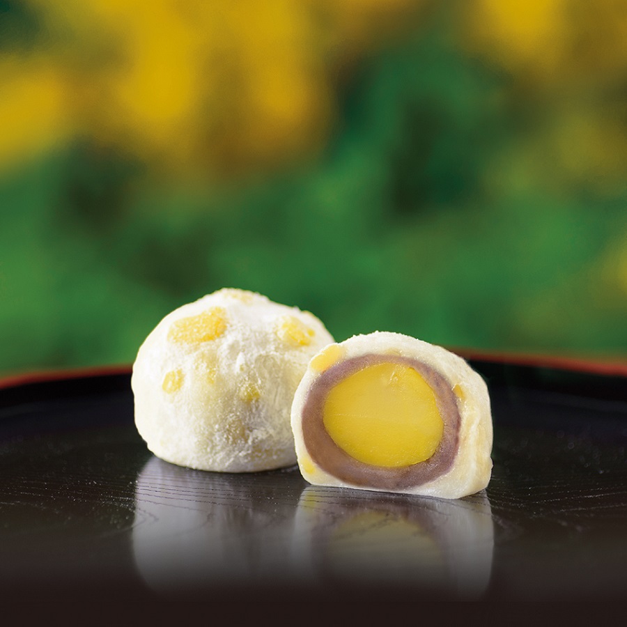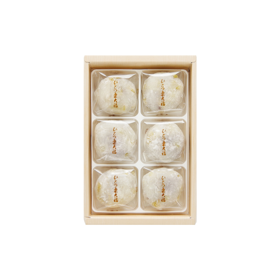 刻み栗入りのお餅と自家製小豆こし餡で、栗をまるごと一粒包みました。こだわりの自家製餡は、北海道産小豆を塩の旨味を生かして煉り上げました。