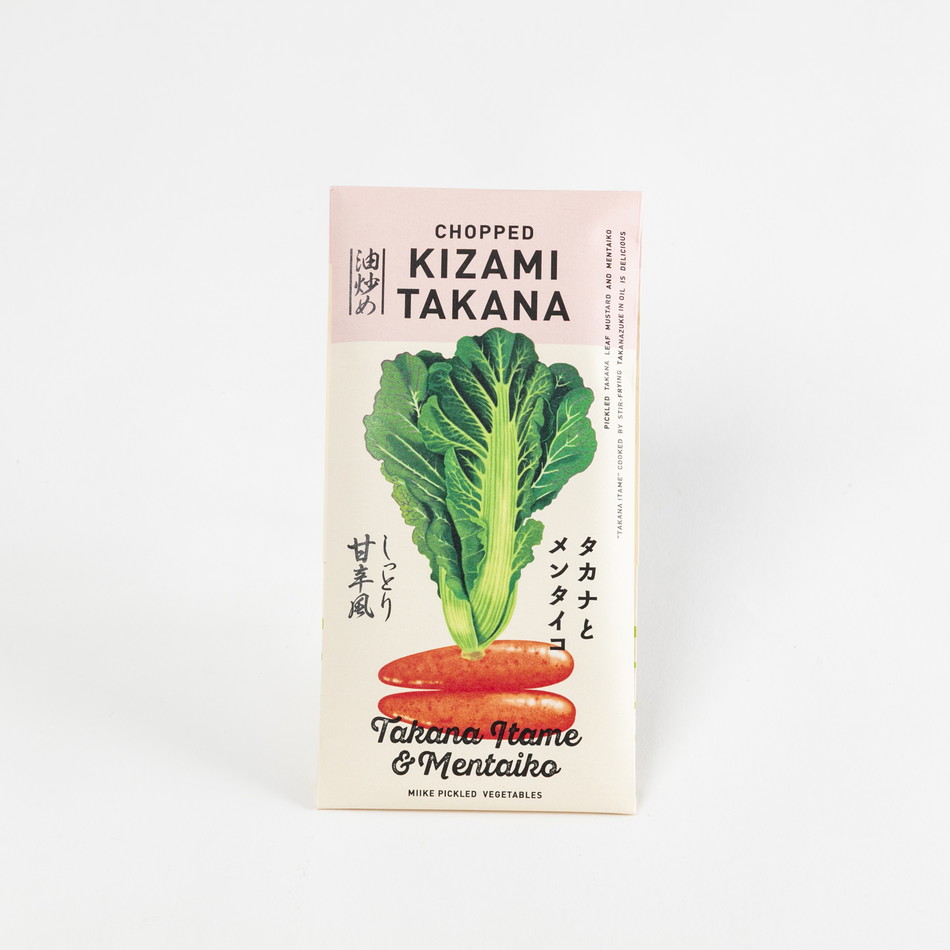 九州産高菜と粒感豊かな明太子を合わせた贅沢な味わい。明太子の旨味とプチプチ食感を楽しめるよう2種類の明太子を使用しました。お土産としてもご利用いただけるよう、一つひとつ丁寧に手包みで包装しています。