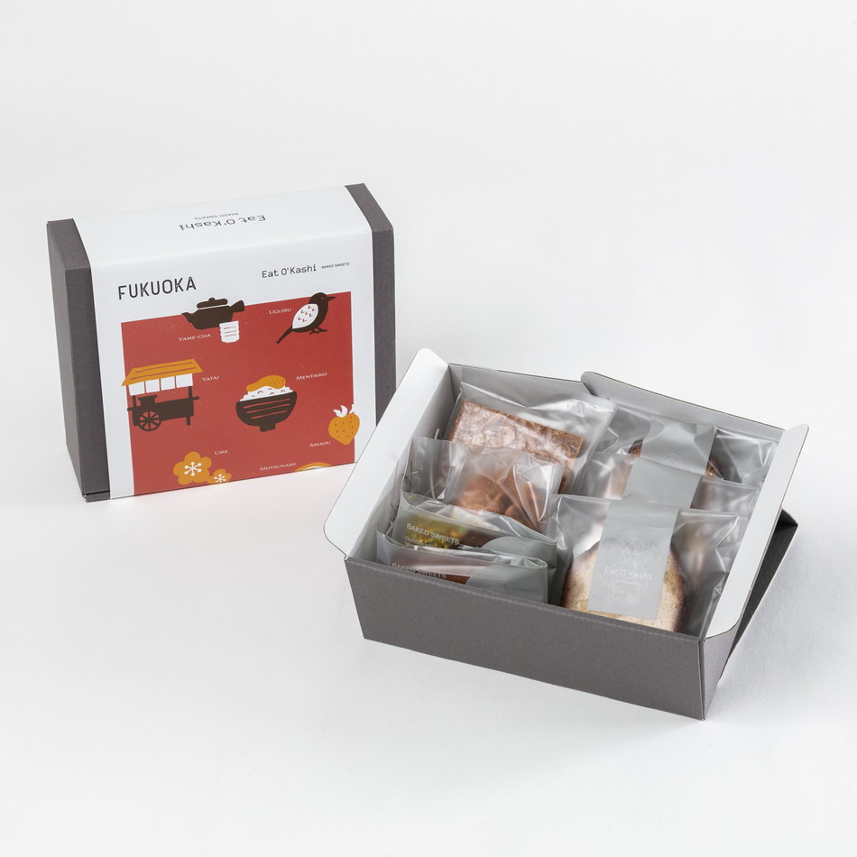 オンラインから始まり『おうち時間のお菓子』として評判を集め、2022年に初の実店舗、そして昨年7月に博多駅に出店した話題の洋菓子店「Eat O'Kashi(いとおかし)」。九州の食材を使用し、ひとつひとつ丁寧に作られた焼き菓子を詰め合わせました。贈り物だけでなく、自分へのギフトとしてもおすすめです。