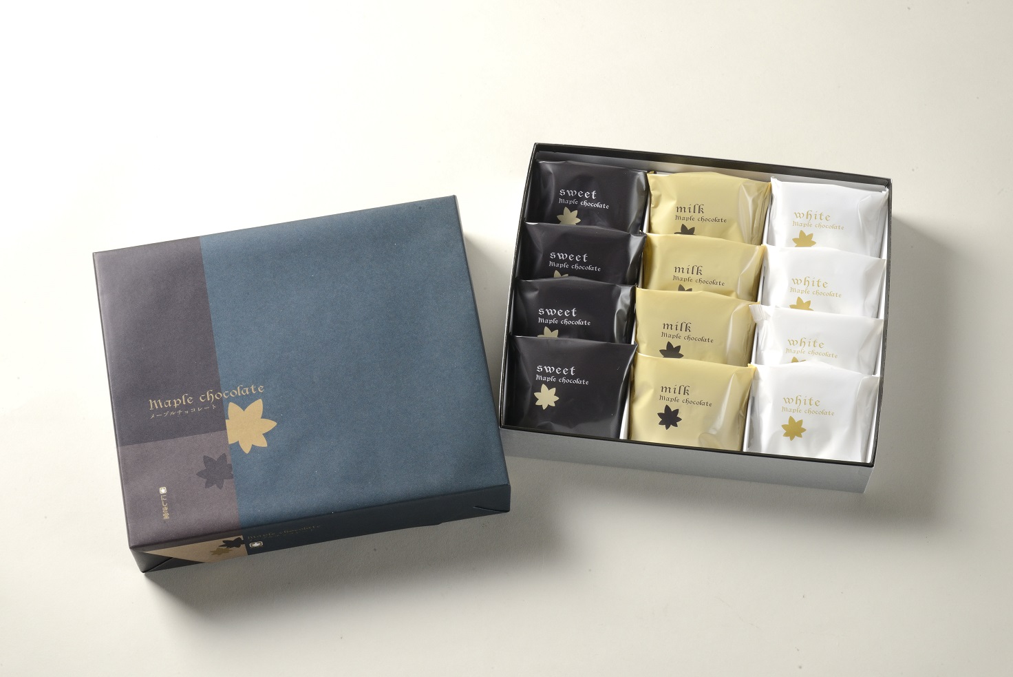 ミルクたっぷりのミルクチョコレートを、チョコレートモミジにコーティングしました。