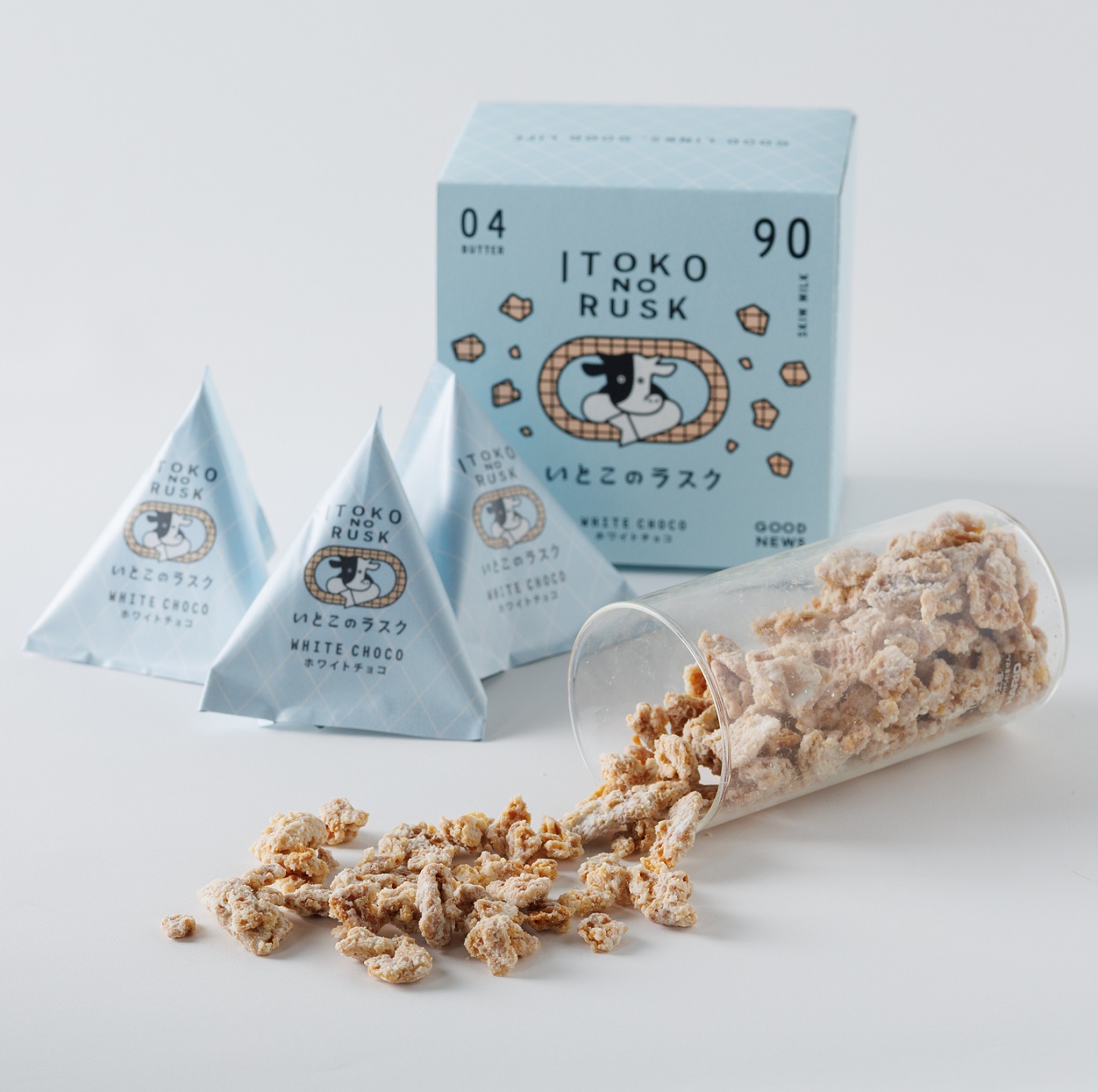 北海道の素材の美味しさを活かし3枚のサブレで2層のクリームをサンド。クリームはホワイトチョコレートに北海道産バターを合わせ、北海道産クリームチーズパウダーを加え、まろやかで風味豊かな味わいに。サブレは北海道美瑛産小麦のオリジナルブレンド小麦粉を使い、隠し味にオホーツクの塩をほんのり加えています。