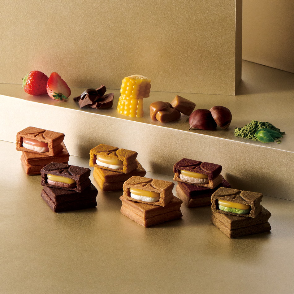 ブランドの代表商品であるバターサンドと、新定番として誕生したチョコレート、普段はその地域でしか手に入らない北海道れん乳とうきび、栗、宇治抹茶、あまおう苺を一度に味わえるぜい沢なセット。特別な日にふさわしい、華やかで特別なひと箱です。