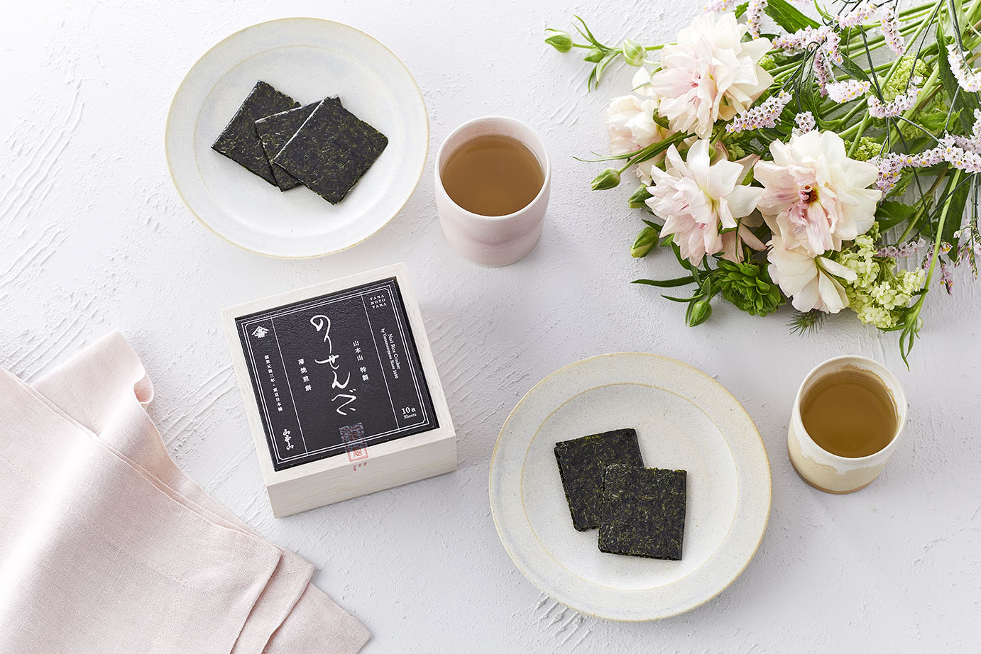 紙すきの技術で作る海苔はとても薄く、パリッとした軽い食感が際立ちます。味わうほどに磯の風味が広がる、山本山の「のりせんべい」をお楽しみください。