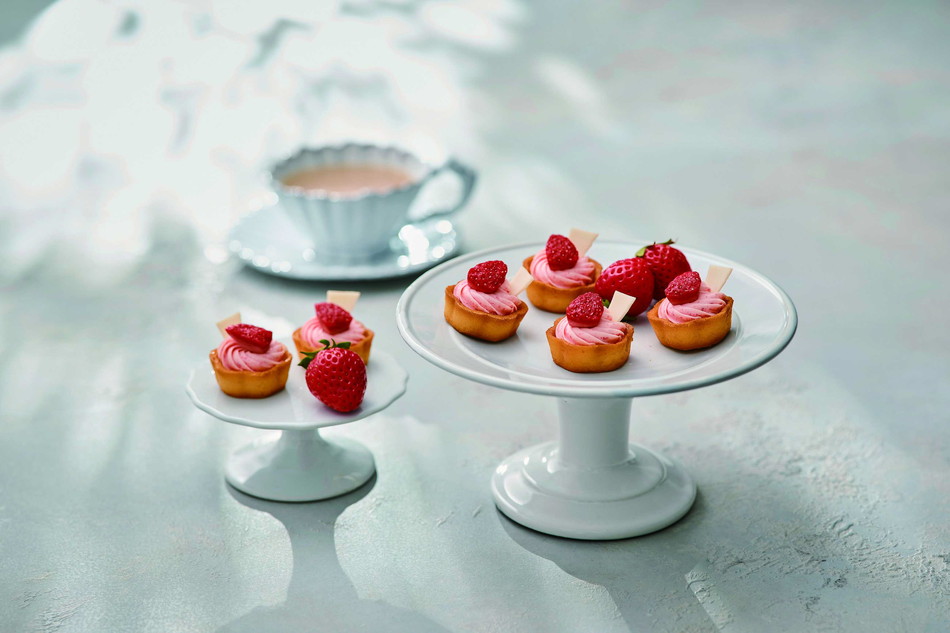 サクサクのタルトに甘酸っぱいミックスベリージャムとストロベリークリームを絞り、ドライ苺とホワイトチョコレートで飾り付けました。