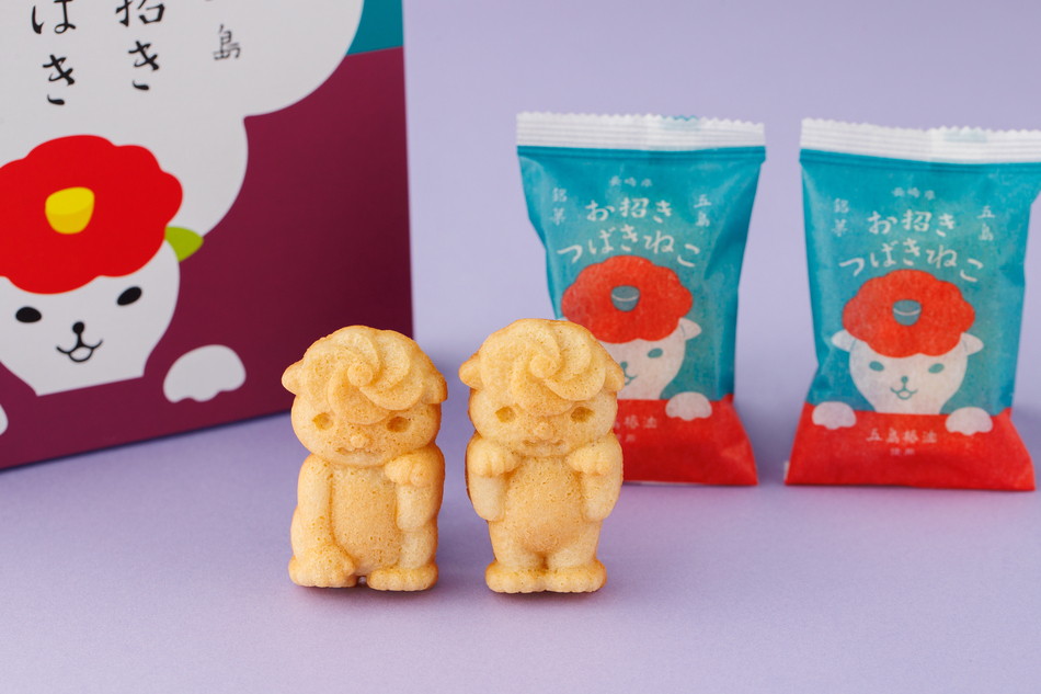 五島の人気者”つばきねこ”のように、訪れる人を思わず笑顔にする愛らしさを込めて焼き上げたマドレーヌです。ふんわりとした食感とやさしい甘さが広がる、どなたにも好まれる素直なおいしさ。見た目もかわいらしく、手土産にもピッタリの、五島の新しい招福スイーツです。