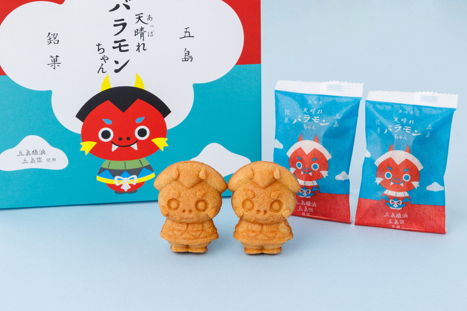 五島に伝わる縁起物「バラモン凧」をかたどり、子どもの健やかな成長と立身出世を願う思いを込めて焼き上げたキャラメル風味のマドレーヌです。
