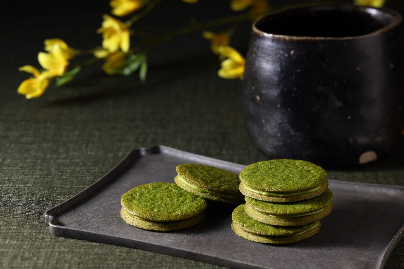 クッキー生地はアーモンドダイスを使用し、宇治抹茶を配合。中はホワイトチョコと抹茶のマリアージュ。抹茶の程よい苦味と旨味を感じる、抹茶の風味とザクザクした新食感の味わいをお愉しみください。