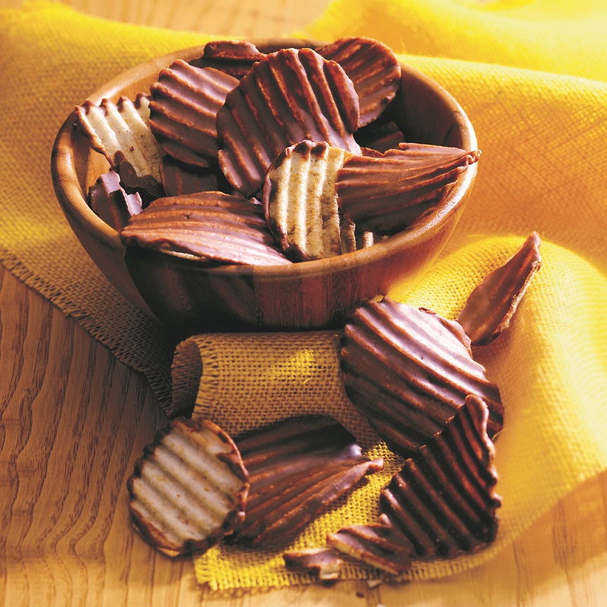 パリッとしたポテトチップの片面に口どけの良いチョコレートをコーティングしました。 チョコレートの甘さとポテトチップの塩味が織りなすハーモニーをお楽しみください。