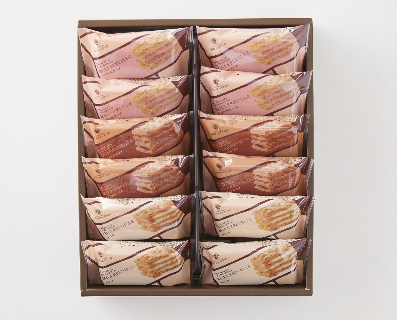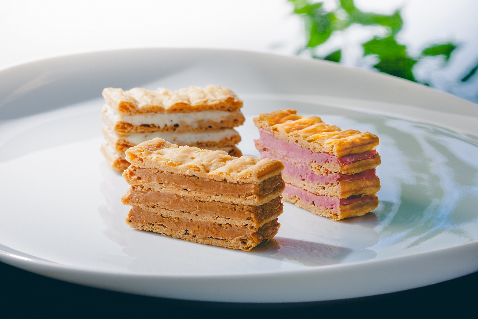 バターを包みながら144層に折り込んだサクサクのパイ生地で、口どけなめらかな3種のクリームをサンドしました。