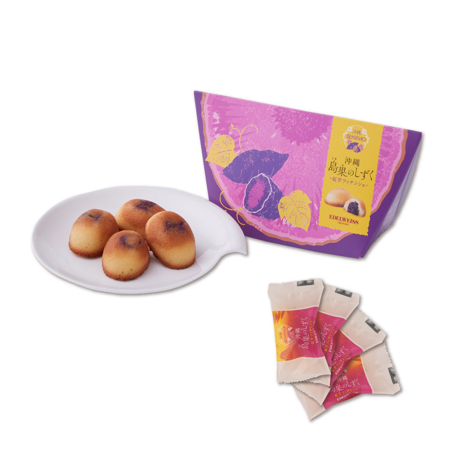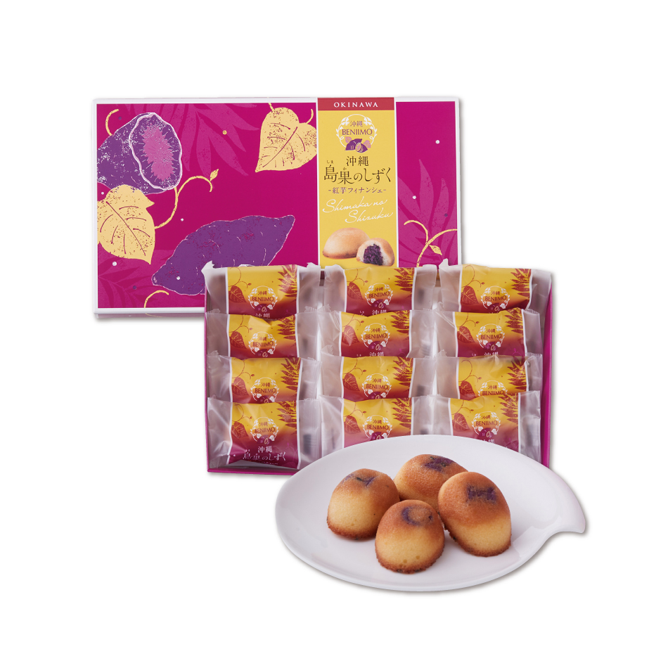 バターの香り豊かなフィナンシェ生地に、ぎゅっと濃厚な甘みが特徴の沖縄県産の紅芋の餡を包んで、焼き上げました。