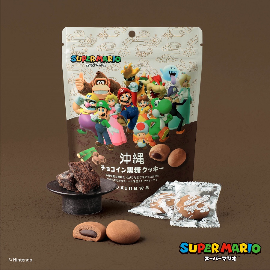沖縄県産の黒糖とうるま市推奨品の「くがにたまご」を使った生地で、なめらかなチョコレートを包んだクッキーです。スーパーマリオ数量限定パッケージ仕様です。