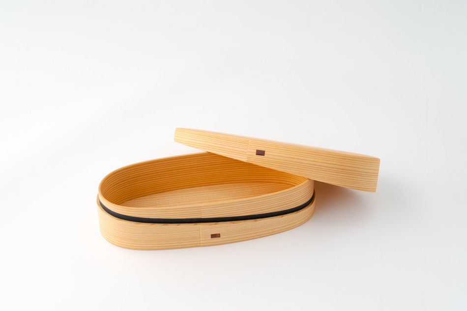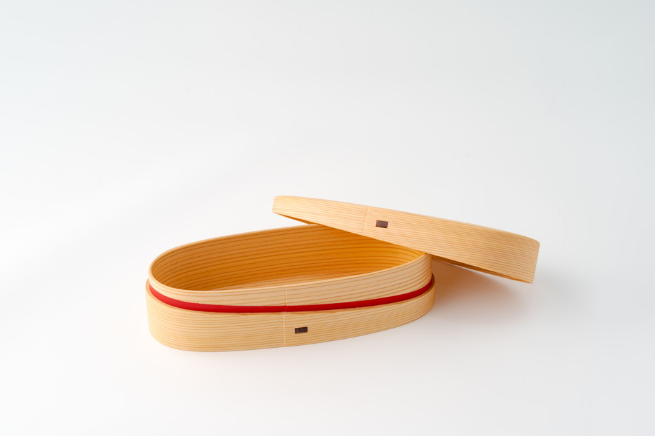 曲げわっぱのお弁当箱です。細長いから、詰めやすい・持ちやすい! 塗装加工をしているので、唐揚げやパスタなど、油物も気にせずお使いいただけます。 調湿効果でごはんのおいしさも楽しめます。 ご使用後は食器用洗剤でしっかり洗えて、お手入れが簡単です。