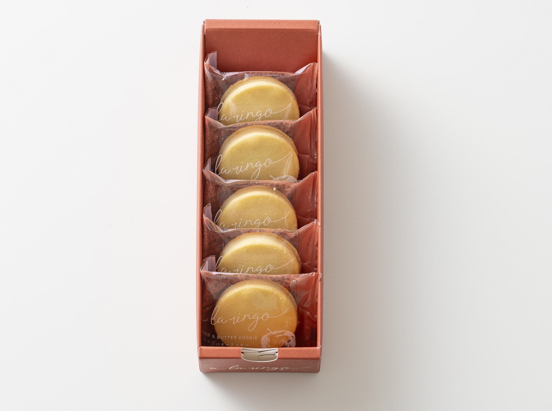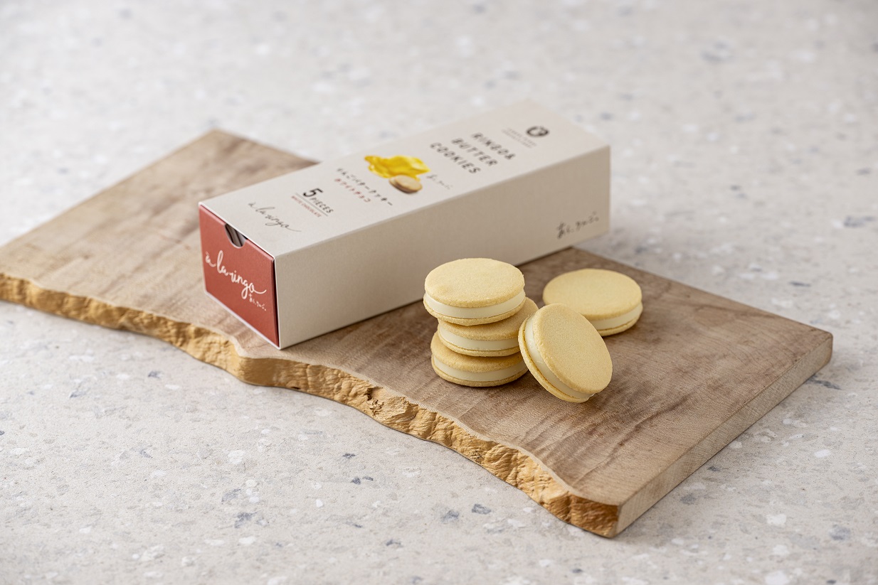サクサク食感のサブレに、りんご果汁パウダーを使用したホワイトチョコレートをサンドしました。 バターとりんごの風味が芳醇に香るクッキーです。