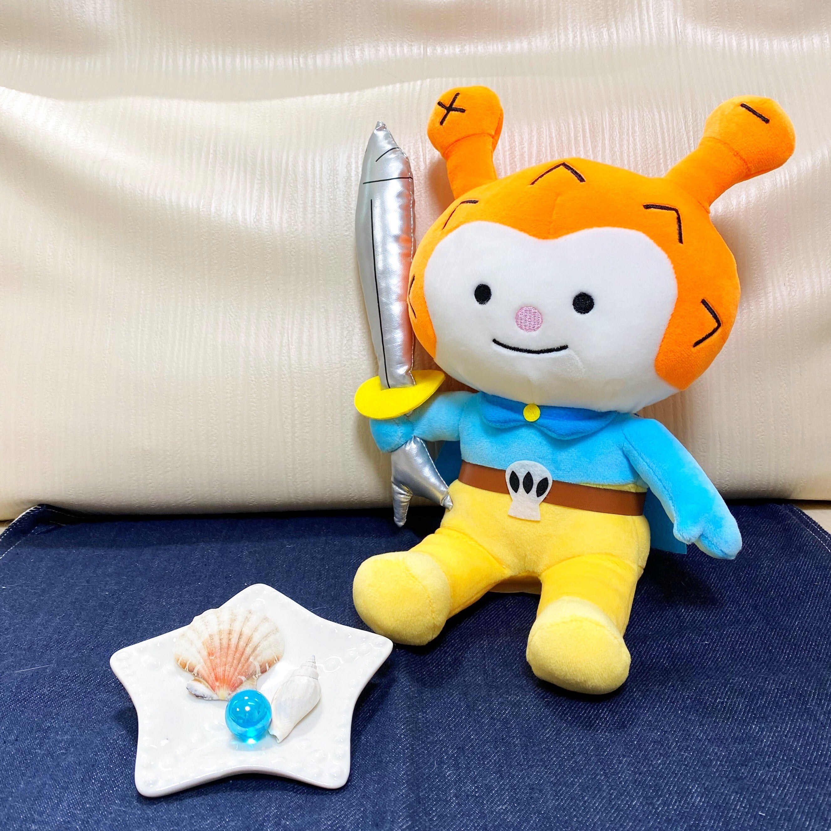 トレードマークはサンマの剣! 高さ約30cmで存在感のあるぬいぐるみです。もっちりとした触り心地が特徴です。