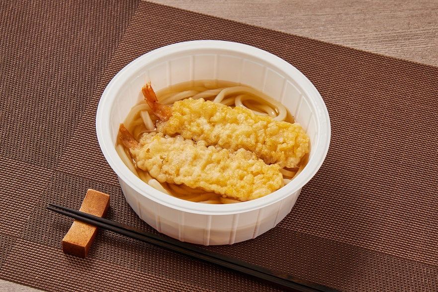 海老天を贅沢に2本のせた、県外のお客様にも人気の一杯です。食感の良い海老を使用した海老天に、老舗醤油を使った深い味わいの出汁がしみ込み、格別のご馳走感を演出します。香川県の地で磨かれた技術により、麺のコシ・つゆの風味をそのまま再現。旅の思い出に残る、上質でご当地らしい讃岐うどんをお楽しみください。