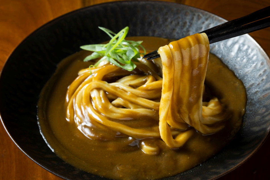 うどんは製粉メーカーと共同開発した山田家専用の小麦粉と酒処ならではの良質の水を使用して製造しています。乾燥うどんや半生うどんでは味わえないもっちり感と小麦の香りが特徴です。カレールーは厳選した14種類のスパイスを調合し、新鮮な野菜の旨みを活かした特製カレーうどんです。