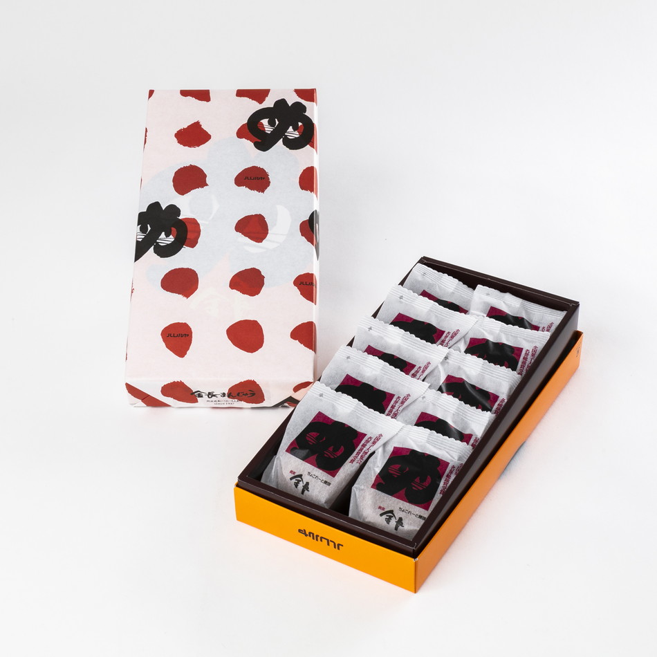 チョコ風味の生地で、手芒豆を使用した自社製の白あんを包んだ、おまんじゅう。ほろ苦くコクのある皮と、あっさりした白あんの調和に仕上げました。お土産や来客時のおやつにぴったりのお菓子で、お茶やコーヒーにも良く合います。