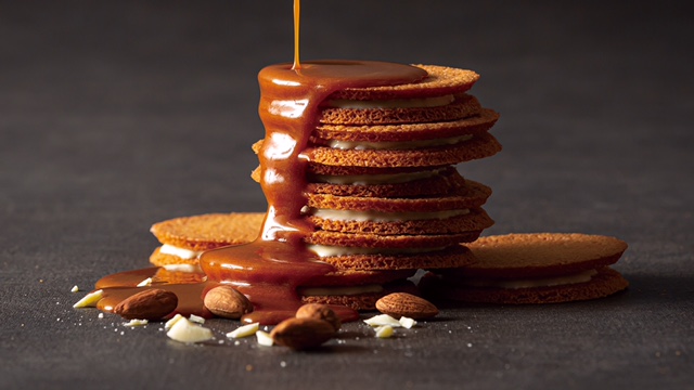 定番商品の「き花」は、クーベルチュールホワイトチョコをアーモンドガレットではさみ、スイートな味わいとアーモンドの香ばしさが人気のお菓子。それをアレンジした限定味の「き花 キャラメルワルツ」は、香ばしく焦がしたキャラメルをホワイトチョコに練り込んでいます。ちょっぴりビターなキャラメルとアーモンドの濃厚な香りがお口の中に広がります。