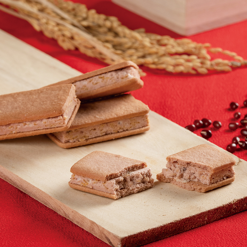 「福を重ねるぜんざいサンド」は、ぜんざい発祥の地と言われている出雲ならではの、ぜんざいをイメージして作られたクッキーです。小豆入りのホイップクリームをザクザク食感のクッキーでサンドしてあり、お味はまさにぜんざいそのもの!和風なのに洋風のお菓子で、食べ応えも十分です。スタッフも一押しの人気商品です!