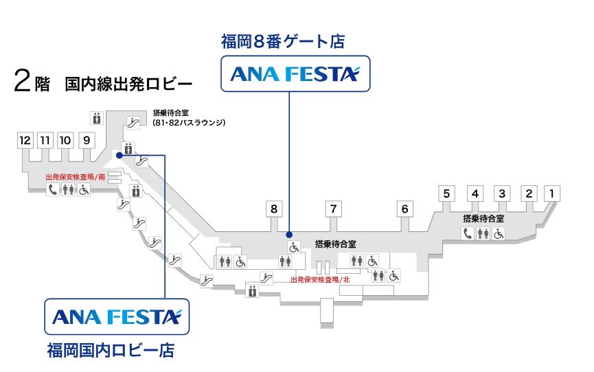 ◆ANA FESTA福岡8番ゲート店(保安検査通過後) 【営業時間】6:00~21:00