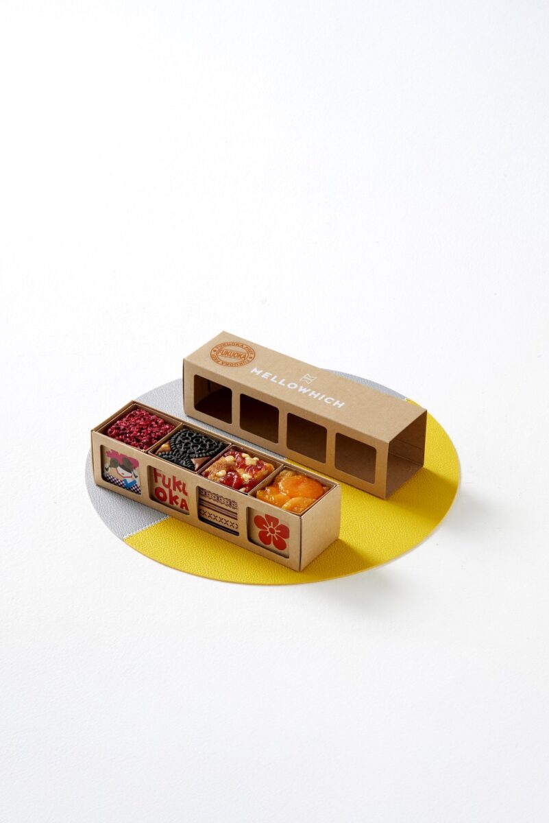 博多どんたくの踊り子や大宰府の梅などの絵柄と「FUKUOKA」「HAKATA」の文字があしらわれていて、とても可愛らしく福岡旅行のおみやげにぴったりのパッケージになっています。