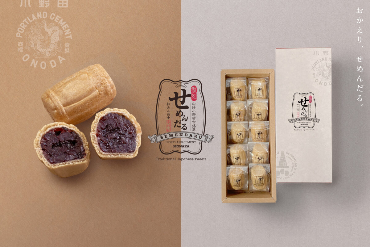 「せめんだる」は明治時代にセメントを運ぶ容器として使われた樽をモチーフにした最中です。一時期、姿を消していましたが、「復刻せめんだる」として新たに提供できるようになりました。あんこは小幡寿康氏に教えを請い、小豆の風味が残るやさしいあんこを完成させ「復刻せめんだる」として蘇りました。どうぞ郷土の誇りをお召し上がりください。