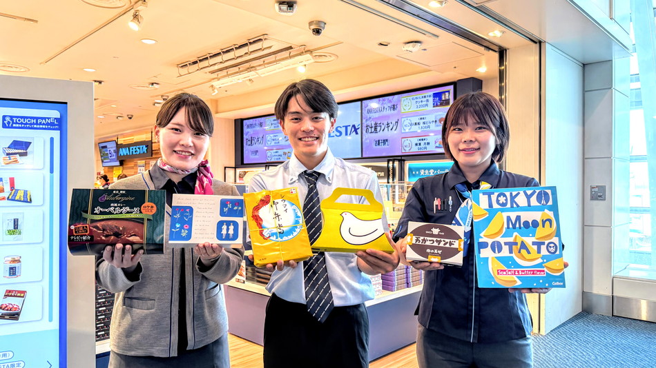ANA FESTAのスタッフがおすすめする絶対に外さない羽田空港で買える「お菓子」は、「豊島屋 鳩サブレー」、「カルビー 東京ムーンポテト」、「タルティン タルト」です。