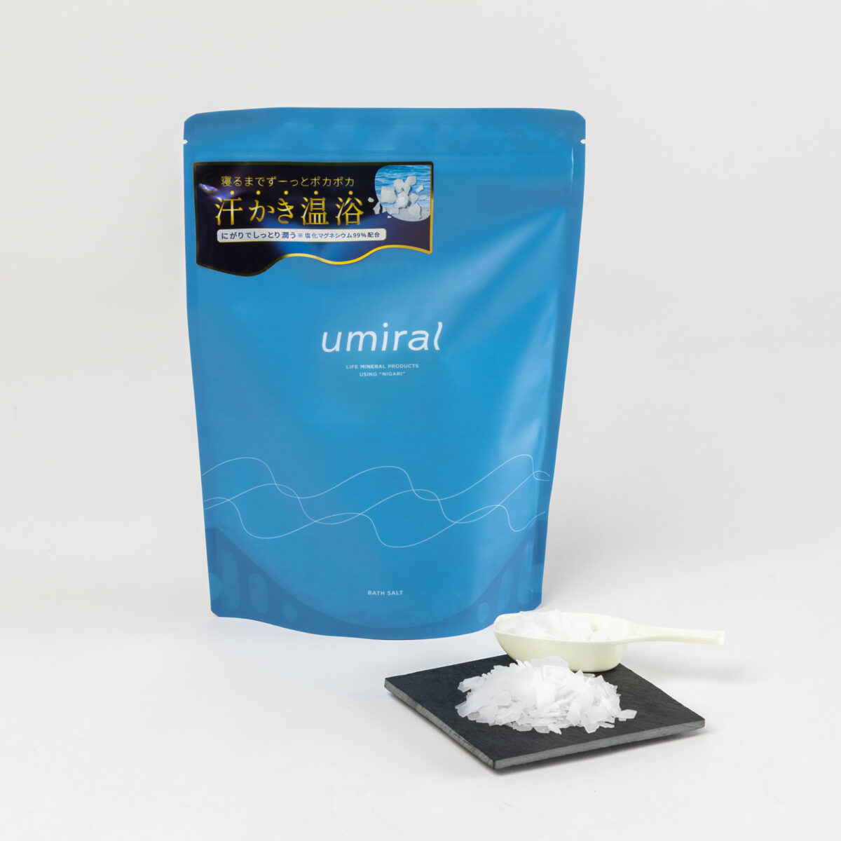 にがりは塩化マグネシウムをはじめ、生命活動に必要なミネラルを豊富に含む海の恵みです。その海の恵み「塩化マグネシウム(にがり)」でできたフレークタイプのバスソルトです。保湿・保温効果の高い「にがり浴」で、お肌はうるおい、カラダは芯からポカポカに。海のミネラルを浴びて、心地いい眠りを。